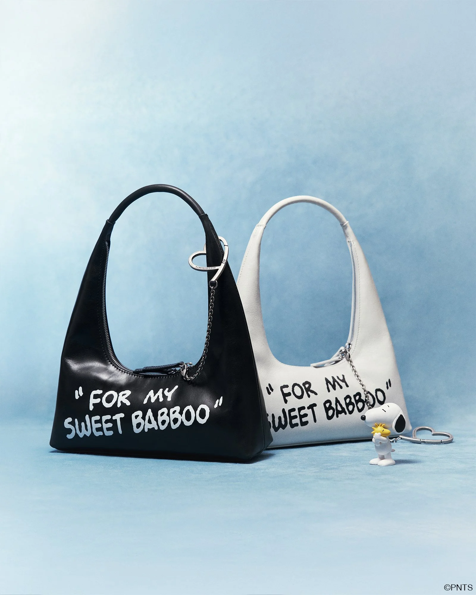 本系列核心設計元素包含 「For my sweet babboo」 字樣與愛心蕾絲細節,靈感來自 Sally 對 Linus 的親暱稱呼以及她所寫的情書。Sally 表達愛意的各種元素,以當代風格呈現 PEANUTS 可愛而浪漫的精神。藉由此次合作,MARGESHERWOOD 以真誠與風趣的方式傳遞愛的情感,透過設計為日常生活注入怦然心動的時刻。